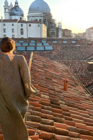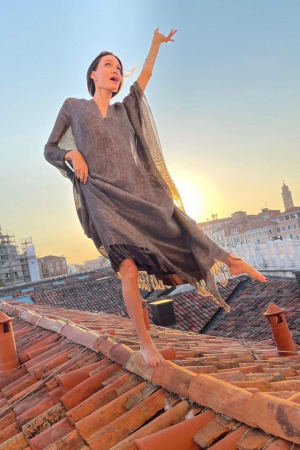 В інстаграм-сторіс JR показав ексклюзивні фото Анджеліни Джолі. У його об'єктив акторка потрапила під час обіду в елітному вагоні-ресторані та на борту водного таксі. Фотограф оприлюднив у мережі ще одну розвагу, яку розділив з голлівудською зіркою. У Венеції вони босоніж гуляли дахами старовинних будинків.
