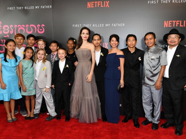 Днями відбулася прем'єра фільму "Спочатку вони вбили мого батька", в якому Анджеліна виступила в якості режисера і продюсера. Для появи на презентації власної картини Джолі вибрала елегантне повітряне плаття в підлогу, в якому виглядала немов принцеса. Варто відзначити, що в цей раз, як і під час попередніх появ актриси на публіці, вона була з усіма своїми дітьми: Меддоксом, Паксом, Захарою, Шайло, Вів'єн і Ноксом.