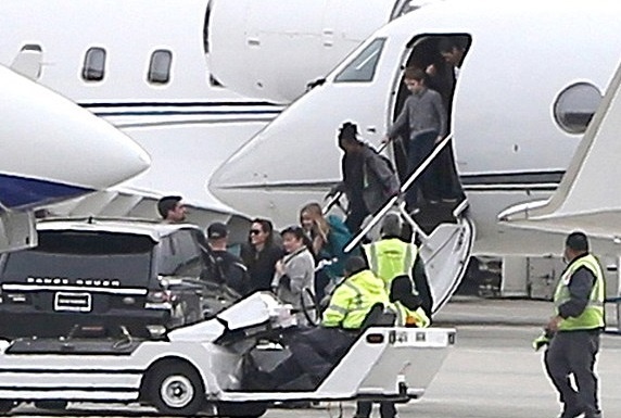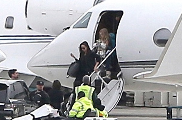 Енджі, яка пережила болісне розлучення з Бредом Піттом у вересні, була в доброму гуморі. Зустрічали зоряне сімейство помічники і друзі.