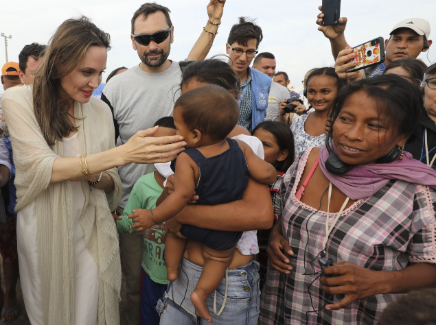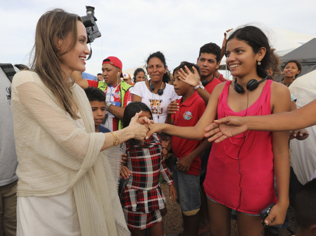 У таборі на кордоні між Колумбією і Венесуелою Джолі поговорила з біженцями, дізналася, як у них справи, та зробила з охочими фотографії та пообіцяла відвідати їх ще.