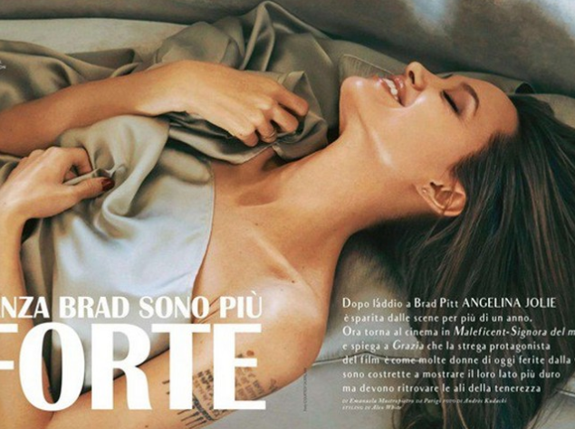 Не встигли фанати відійти від останнього знімка Анджеліни у ванні, як вона поділилася новими пікантними фотографіями для італійського глянцю Grazia. Представники журналу не стали анонсувати співпрацю з актрисою, а відразу опублікували готову обкладинку видання.
