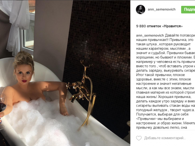 Анна Семенович не перестає тішити шанувальників новими знімками. На цей раз вона опублікувала фото, зроблене у ванній.