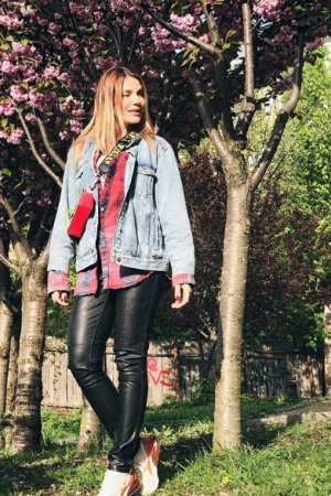 У мікроблозі Тоні з'явилося її фото з прогулянки. Серед квітучих дерев зірка гуляла в чорних шкіряних брюках, червоній сорочці і куртці з деніма.