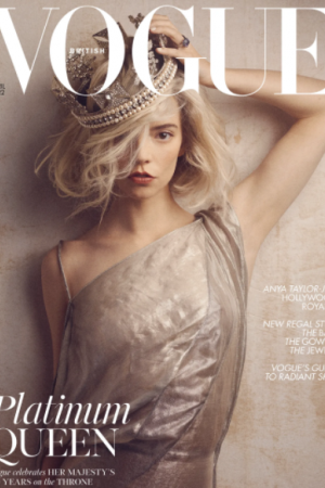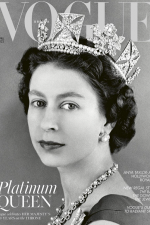 Квітневий випуск журналу присвячений платиновому ювілею. Акторка позувала в легкій сукні платинового кольору, а її голову прикрашала точна копія Державної діадеми Георга IV, яку в молодості носила Єлизавета II.