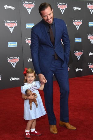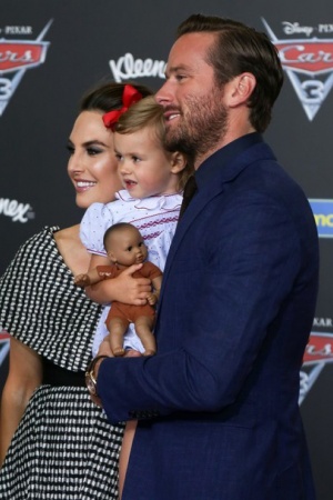Армі Хаммер, який озвучив одного з персонажа в новому мультфільмі "Тачки 3", взяв участь у прем'єрі мультика в Каліфорнії. На червону доріжку Армі привів дружину і двох дітей - 2-річну доньку Харпер і 5-місячного сина Форда.