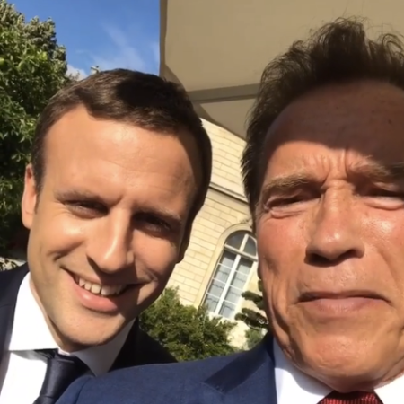 Арнольд не міг не зафіксувати цю зустріч на смартфон. Він зняв невелике відео за участю Макрона і опублікував його в Instagram. Судячи з коментарів самого Шварцнеггера, він залишився дуже задоволений зустріччю з французьким лідером і їм вдалося багато що обговорити.