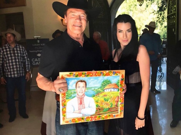 При цьому Кейт Брез піднесла Шварценеггеру картину, написану в українському стилі.