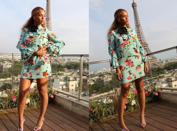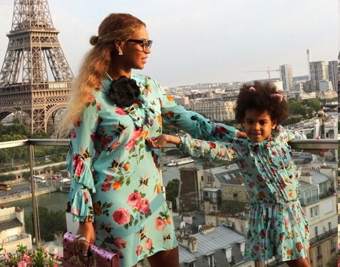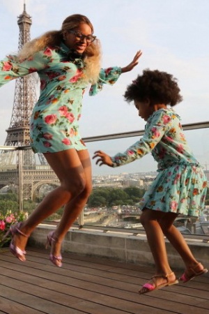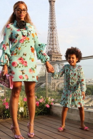 Кілька знімків з відпочинку Бейонсе опублікувала у своєму блозі. На фотографіях виконавиця разом з Блю позують в однакових вбраннях. Для зйомки мама і донька приміряли милі сукні бірюзового відтінку з квітковим принтом від Gucci. Вартість наряду Бі становить 67 000 гривень, а Блю – 16 000 гривень.