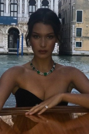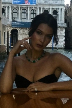 На снимке Белла демонстрирует декольте в наряде с корсетом, а на шее у звезды красуется изумрудное ожерелье. "Потерянная в Венеции, нашла некоторые архивные снимки", – подписала фото Хадид.