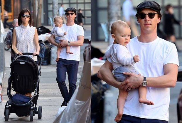 Вдень папараці чекала вдача на вулицях Нью-Йорка, адже на прогулянку з маленьким сином Крістофером Карлтоном вийшли Бенедикт Камбербетч і Софі Хантер. Малюк їхав на руках у зоряного тата, а Софі штовхала перед собою порожню коляску.