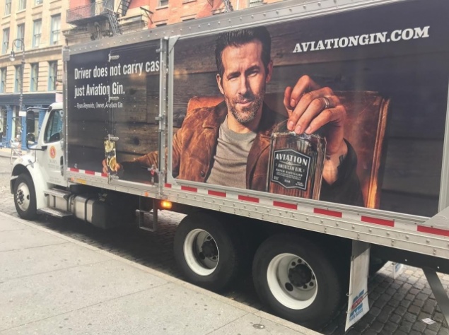 Так, в Інстаграм Рейнольдс опублікував фото вантажівки, на якій розміщений знімок з рекламної кампанії алкогольного бренду Aviation Gin, співвласником якого є актор. Дружина Райана не змогла пройти мимо і їдко прокоментувала фото: