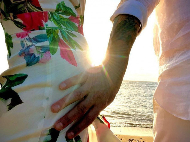 Так, знаменитіcть та його обраниця, 36-річна австралійська танцівниця на ім'я Шарна Берджесс чекають на спільного малюка. У своєму Instagram 48-річний зірка "Останньої зупинки" опублікував зворушливий кадр, на якому тримає вагітний животик коханої.