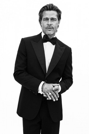 На чорно-білих знімках та відео, які були опубліковані на Instagram-сторінці бренду, Пітт позує у класичному смокінгу з метеликом та світлій слорочці оригінального дизайну.