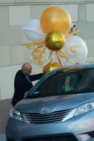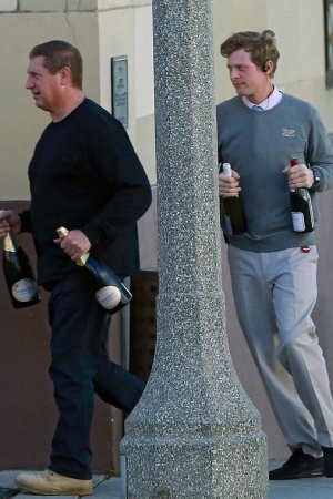 Після негаласливим посиденьок багатодітний батько вирушив на зустріч до дітей, прихопивши для них подарунок у вигляді повітряних куль. Помічники актора також завантажили у позашляховик кілька пляшок шампанського Perrier-Jouët.