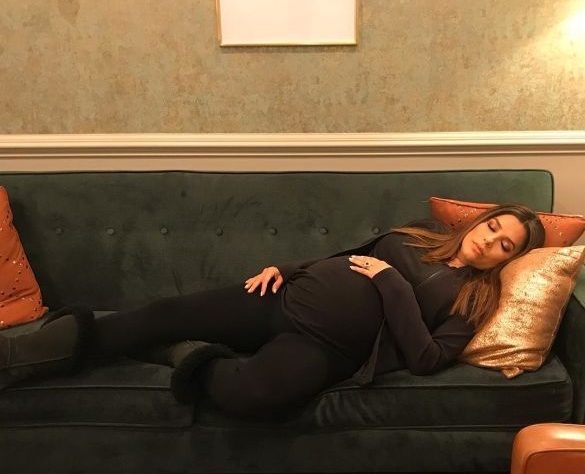 На одному зі свіжих фото Лонгорія зафіксована на дивані. Вона прилягла трохи відпочити, руку поклала на живіт і закрила очі.