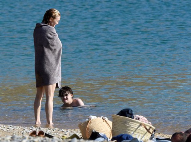 Тим не менш, Параді чудово проводить час на пляжах Греції. Компанію їй склав син, 13-річний Джек.