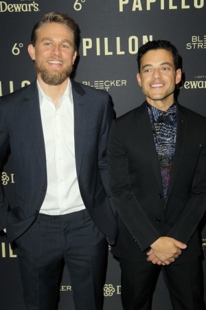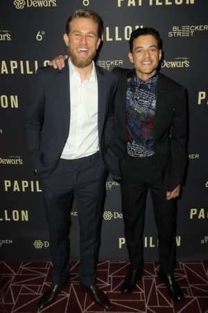 Через місяць з невеликим в прокаті стартує "Метелик" - новий фільм за участю Чарлі Ханнема і Рамі Малека. Зірки представили свій новий проект на червоній доріжці прем'єри в Лос-Анджелесі.