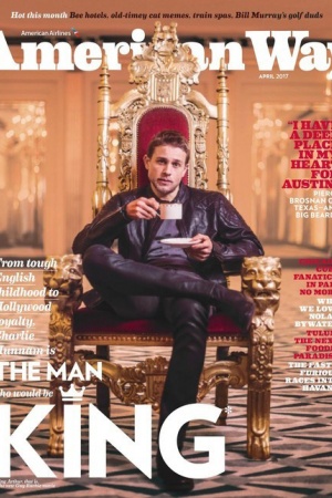Чарлі Ханнем напередодні виходу на екрани кінотеатрів відразу двох нових проектів стрімко перетворюється в улюбленця глянцю: у новому номері видання American Way Ханнем – в повній відповідності з роллю спадкоємця британського престолу у фільмі "Король Артур: Легенда меча" - знявся для обкладинки на троні.