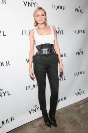 41-річна знаменита актриса Дайан Крюгер позувала фотографам в Нью-Йорку в корсеті, що підкреслює струнку талію актриси, і у брюках від бренду Mugler. Свій образ Дайан доповнила півчобітками від Christian Louboutin.