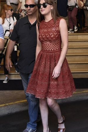Цього літа у Франції проходять зйомки другої частини "50 відтінків сірого". Головні герої стрічки, Дакота Джонсон і Джеймі Дорнан, вже засвітились на пляжі в Ніцці, а вчора актори вийшли на зустріч з фанатами в Парижі. Зіркова пара здивувала своїм, по-справжньому французьким, стилем. Дакота позувала перед камерами у вишуканих сукнях, а Дорнан з'явився на публіці в елегантному костюмі.