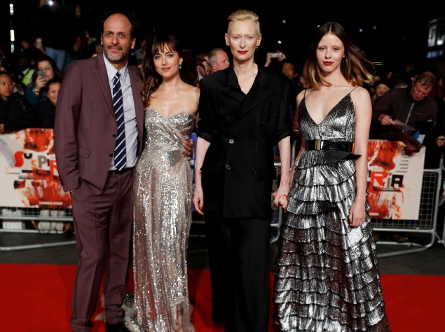 Також на червоній доріжці блищали її колеги по фільму – 57-річна британська актриса Тільда Свінтон, вона одягла штанний костюм від Givenchy, а також сукню цього бренду одягла і актриса Міа Гот.
