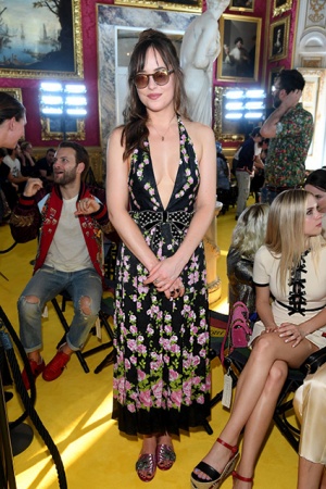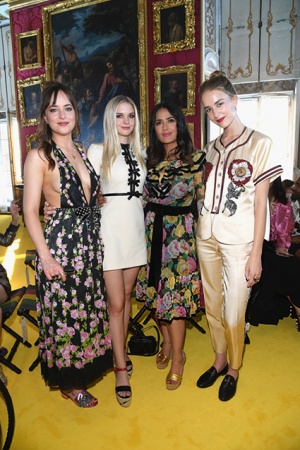 У Флоренції пройшов показ круїзної колекції Gucci. Гостями показу стали Сальма Хайек, Джаред Лето, Кірстен Данст, Елтон Джон та інші шанувальники творчості креативного директора бренду Алессандро Мікеле. Але особливу увагу привернула Дакота Джонсон, яка приїхала на шоу не одна, а з сестрами - 20-річної Стелою Бандерас і 17-річної Грейс Джонсон.