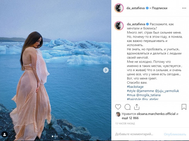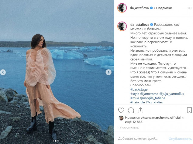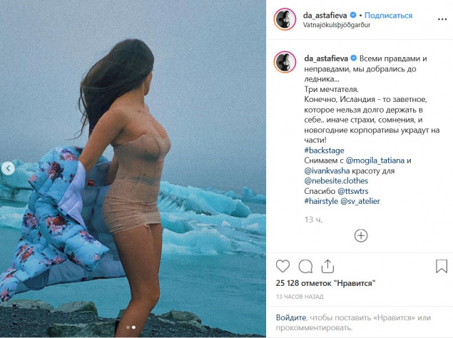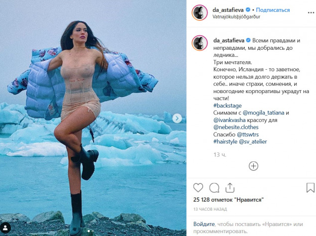 Українська співачка, модель Даша Астаф'єва не втомлюється радувати прихильників спокусливими фото. Цього разу епатажна знаменитість поділилася в Інстаграм кадрами, зробленими на тлі льодовика в Ісландії.