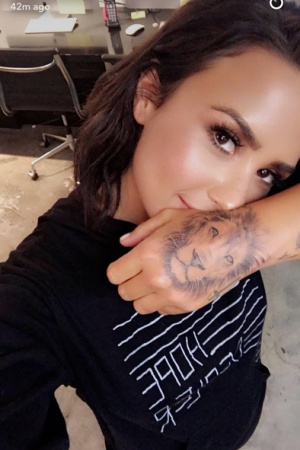 Демі Ловато поповнила свою колекцію татуювань зображенням голови лева на тильній стороні своєї долоні. Раніше у дівчини вже були татуювання з різними написами, ластівками і трояндочками.