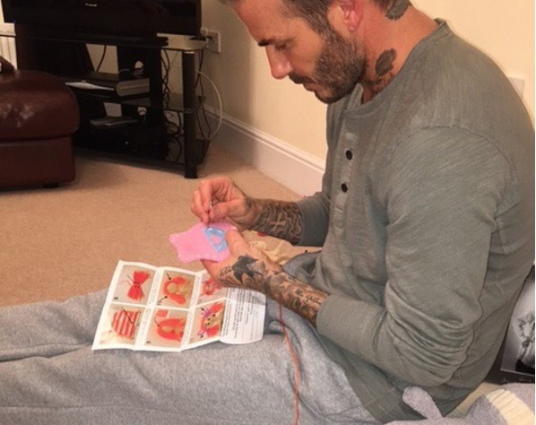 Так, на знімку видно, як Девід дбайливо і акуратно шиє сукні для ляльок улюбленої дочки.