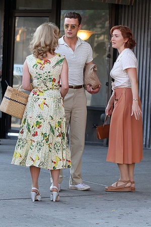 Вчора папараці вдалося зробити кілька кадрів з Тімберлейком, Вінслет і Темпл на знімальному майданчику картини в Нью-Йорку. На знімках можна побачити акторів у ретро-образах в стилі 50-х років: Вінслет костюмери одягнули в персикову спідницю нижче коліна і блузу в клітку, з коротким рукавом, а Джастіна на екрані ми бачимо в світлих штанах і смугастій футболці. Що стосується Джуно Темпл, то вона потрапила в об'єктиви фотографів у приталеній сукні з квітковим принтом.