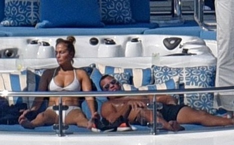 Дженніфер Лопес обрала для прогулянки на яхті білий купальник з бікіні. Зірка засмагала, сидячи прямо на палубі яхти, широко розставивши ноги.