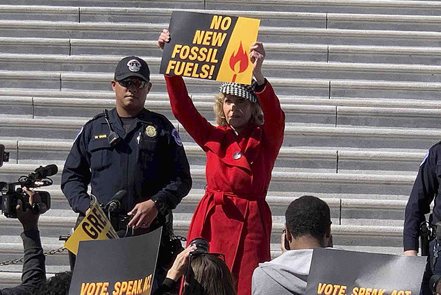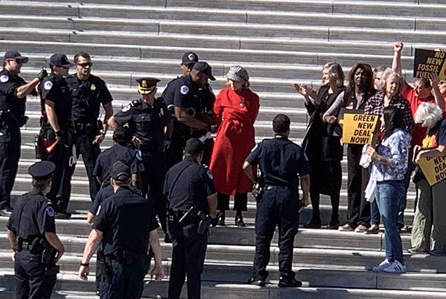 У минулу п'ятницю поліція Вашингтону заарештувала 81-річну актрису Джейн Фонда у числі 16 активістів на акції протесту проти зміни клімату. Голлівудська зірка і її однодумці влаштували пікет на східцях Капітолія. Поліцейські наділи на Джейн кайданки і відвели у свій фургон.
