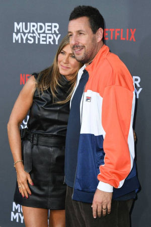50-річна Дженніфер Еністон вийшла на червону доріжку в Regency Village Theatre, просуваючи комедійний бойовик від режисера шоу "Парки і зони відпочинку". Актриса позувала фотографам в шкіряній міні-сукні від Celine By Hedi Slimane і відкритих босоніжках на високих підборах. До зірки приєднався колега по фільму і її екранний чоловік Адам Сендлер, який з усіх можливих костюмів віддав перевагу спортивному.