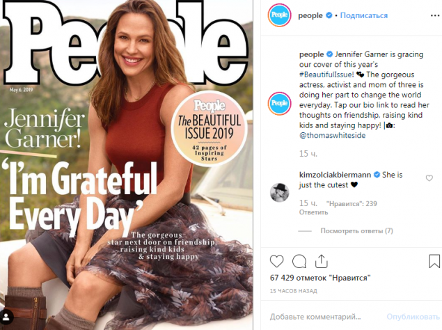 Популярна американська актриса і громадський діяч Дженніфер Гарнер стала найкрасивішою жінкою року за версією журналу People. Відповідна фотографія була опублікована на обкладинці спецвипуску видання.