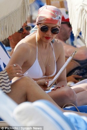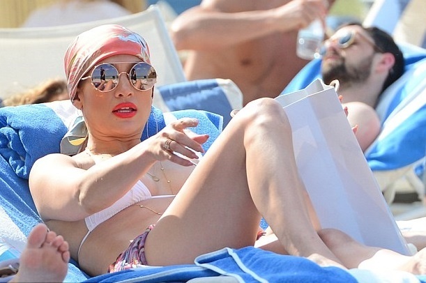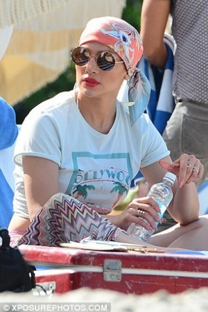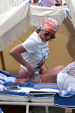 Мати двох дітей виглядала приголомшливо в білому бікіні. Джен була в дзеркальних сонцезахисних окулярах і барвистій хустці. Навіть на багатолюдному пляжі її можна було впізнати із сотні людей, не тільки завдяки стрункій фігурі, але і червоним губам.