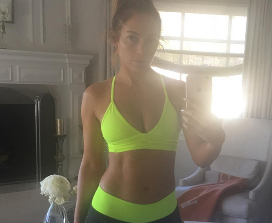 На фото зірка без макіяжу позує в короткому спортивному топі, який вигідно підкреслює плоский живіт співачки та підкачані лінії преса. Шанувальники по достоїнству оцінили спортивну фігуру Лопес і поставили майже 200 тисяч лайків.