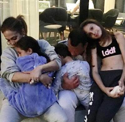 А на наступному фото Дженніфер зі своїм хлопцем його дочками Елою і Натхашою, плодами попередніх стосунків спортсмена, а також з колишнім чоловіком Марком Ентоні і власними дітьми близнюками Максом і Емою.