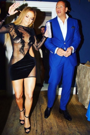 На вечірку Лопес прибула у супроводі свого коханого Олексія Родрігеса - професійного бейсболіста.