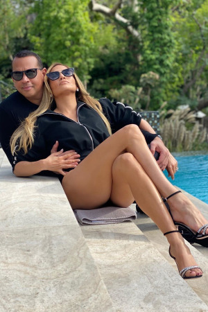 На знімку, де закохані позували біля басейну, Джей Ло була вбрана тільки в чорну спортивну куртку та демонструвала довгі засмаглі ноги.