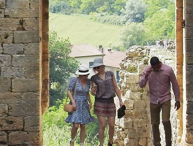Весілля відбулося на минулих вихідних в Тоскані. Перед святковим заходом актриса з іншими гостями молодих, серед яких можна було впізнати Азіса Ансарі і його брата Аніза, відвідала ряд пам'яток Італії. Їх помітили на прогулянці по Монтеріджионі, відомої в Італії комуни, яка була організована в 1203 році.
