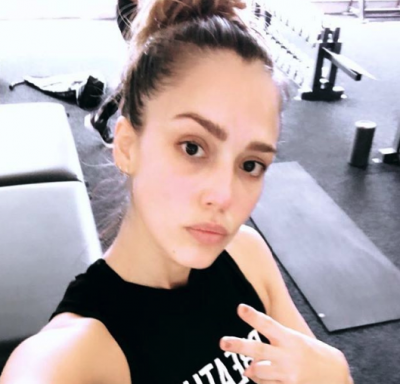 На кадрі 37-річна Джесіка позує в спортзалі. Звичайно ж зірка не нанесла мейк-ап під час зайняття спортом і показала свою природну красу.