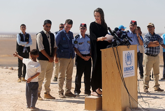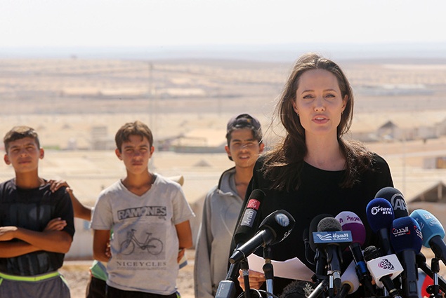 Анджеліна Джолі все більше свого часу присвячує загальносвітовим проблемам. Відразу після виступу в Лондоні на миротворчому саміті Організації Об'єднаних Націй актриса відправилася в Йорданію, місто Азрак, де розташований табір для сирійських біженців.