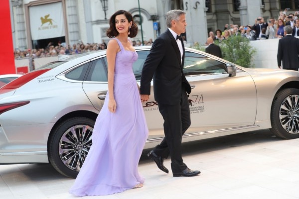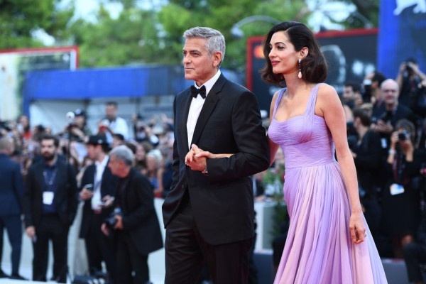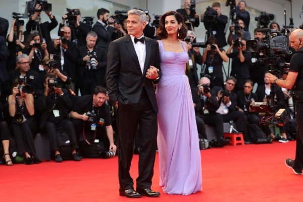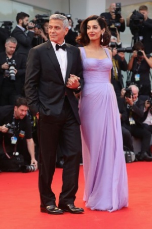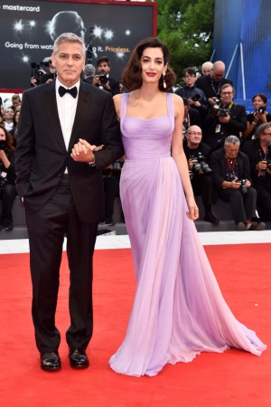 Незважаючи на те, що всього пройшло три місяці після пологів, Амаль виглядала чудово. Для червоної доріжки дружина актора вибрала елегантне плаття бузкового кольору від Atelier Versace, а Клуні в свою чергу одягнув смокінг від Armani.