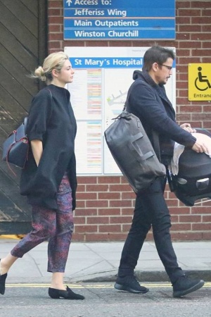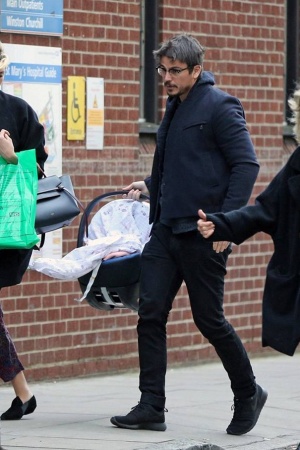 37-літній актор Джош Хартнетт був помічений в понеділок, коли забирав свою дівчину Тэмсин Егертон з лондонського госпіталю Святої Марії, де вона народила дитину.