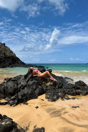 46-річна знаменитість поділилася у фотоблогу новими пляжними світлинами. На знімках зірка позувала без макіяжу, одягнена у яскраве рожеве бікіні. Телеведуча продемонструвала свою природну красу та бездоганну фігуру.
