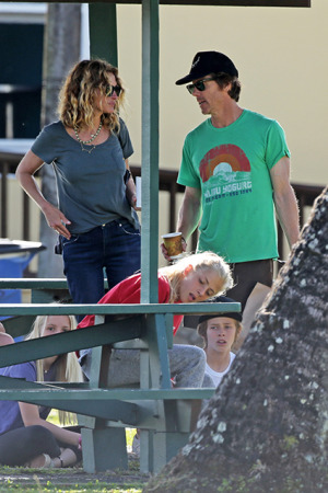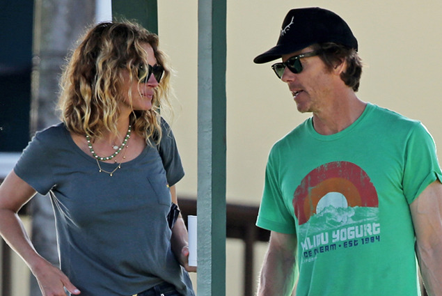 Джулія невимушено спілкувалася з друзями і своїм чоловіком - 50-річним кінооператором Денні Модером, попиваючи каву, і зовсім не звертала увагу на репортерів, що снують серед пальм. Поки дорослі обговорювали останні новини, неподалік грали діти.
