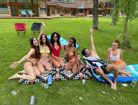 З друзями артистка веселилася на надувному басейні-гірці, потім танцювала, грала у м'яч, ну а ввечері всі разом водили хороводи біля багаття.