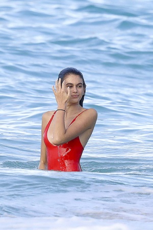 Висхідна зірка модельного бізнесу гуляла в морі з подругами в червоному купальнику. Вже потім користувачі всесвітньої павутини згадали касети з вправами Сінді Кроуфорд "Секрети ідеальної фігури", випущені супермоделлю в далеких 90-х. Тепер ні в кого не залишається сумнівів, що якщо дочка Сінді і бізнесмена Ренді Гербера піде по стопах матері, то її чекає не менший успіх.