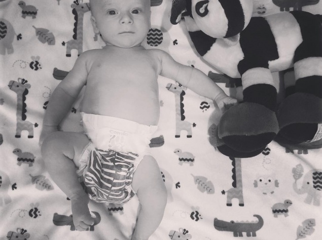 На чорно-білому знімку маленький Еней позує в підгузках, уважно дивлячись у камеру. "Моя маленька зеброчка", - підписала фотографію з малюком Анастасія.