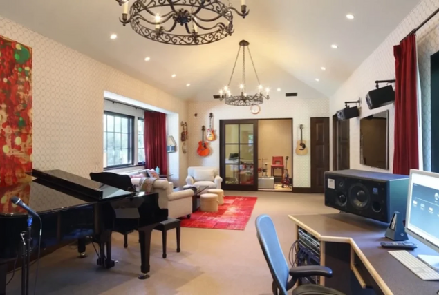 В основному будинку є шість спалень, 11 ванних кімнат, кінотеатр, приміщення для запису музики і тренажерний зал.